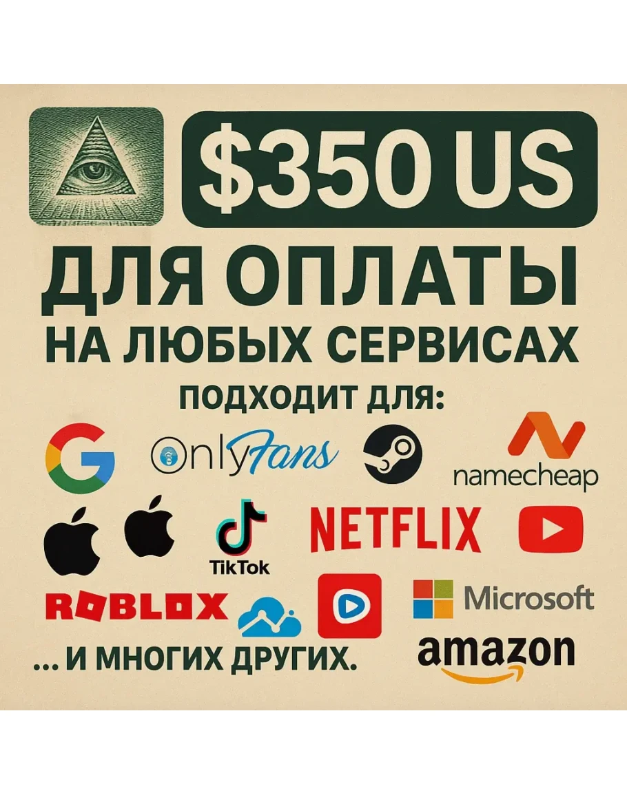 350 US Для оплаты на любых сервисах. ЦЕНА USD