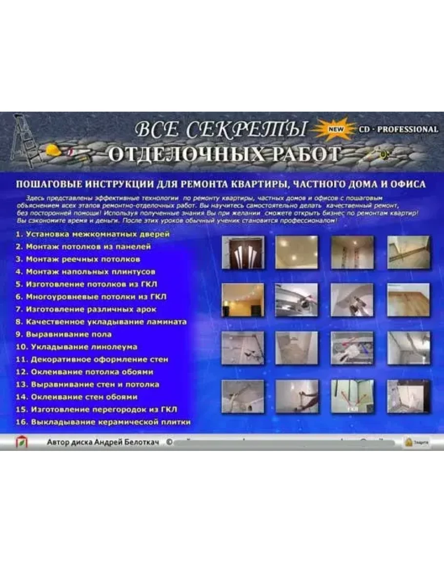 Диск содержит самые современные и эффективные инструкции для ремонта квартиры: