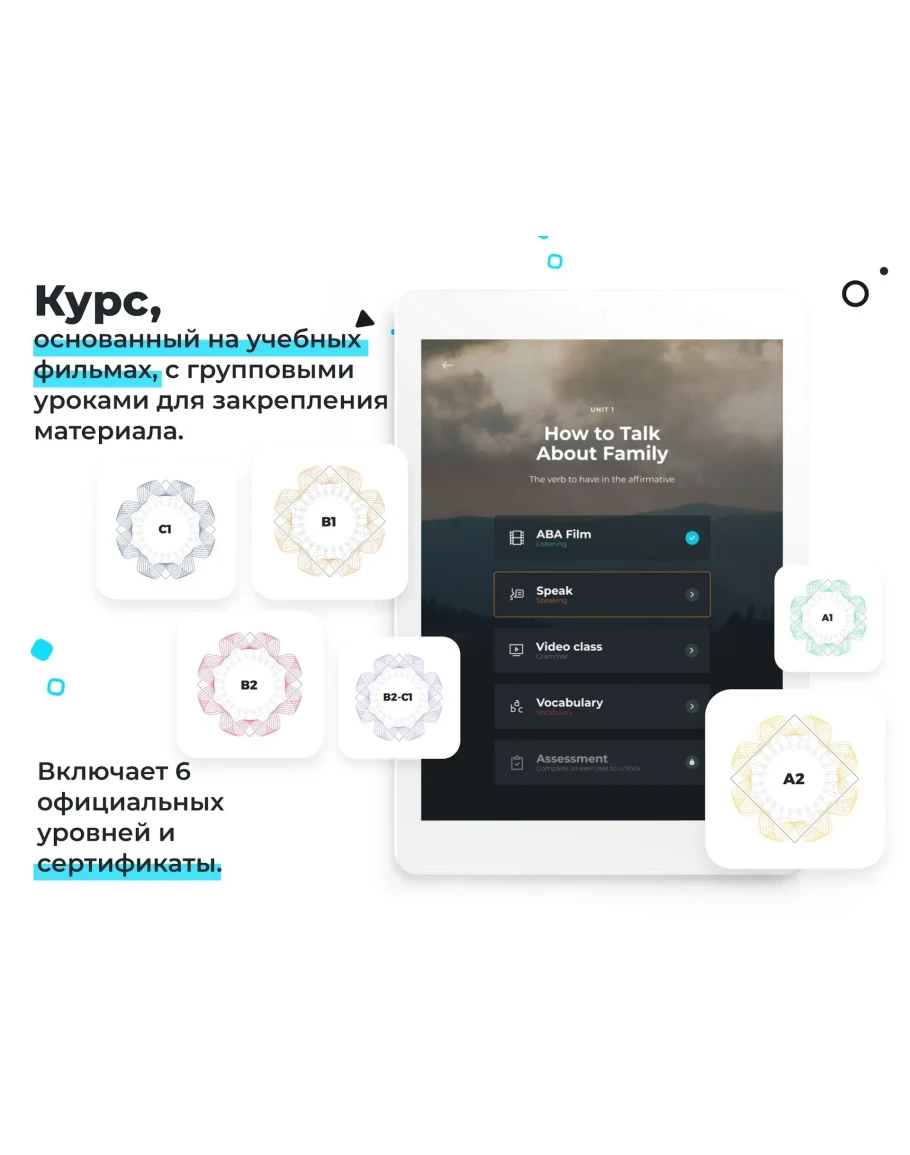 🔹 Курс английского языка для 6 уровней (A1–C1).
