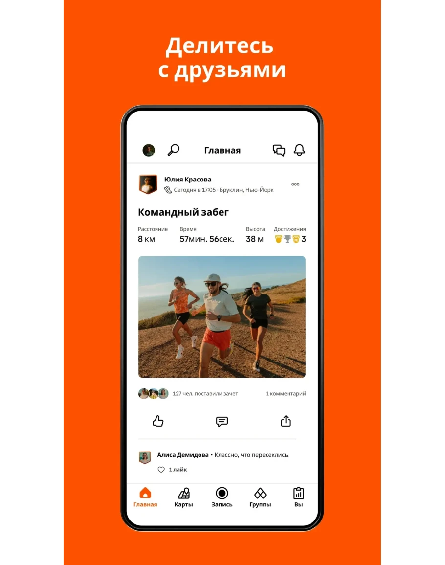 🔸Узнайте, где бегать, с помощью предложенных маршрутов и других инструментов картографирования.
