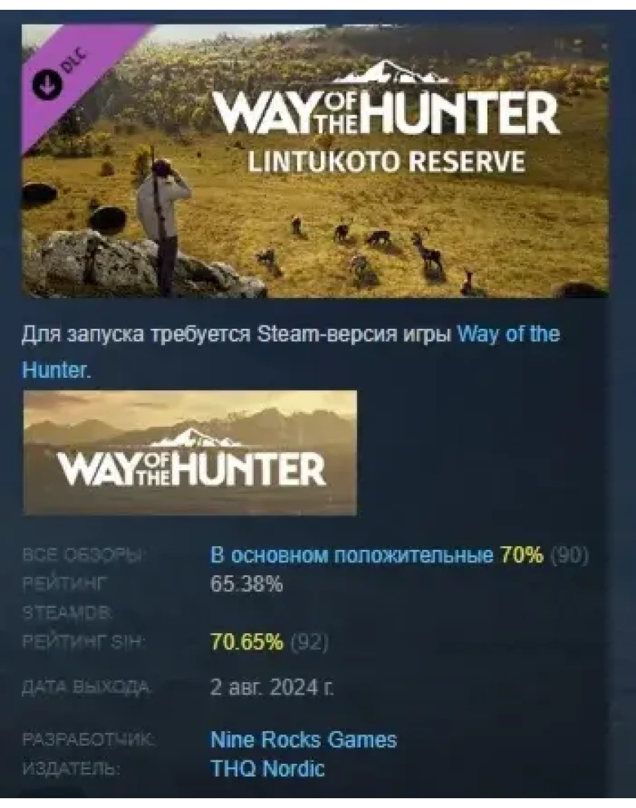 Way of the Hunter - Lintukoto Reserve DLC STEAM РОССИЯ