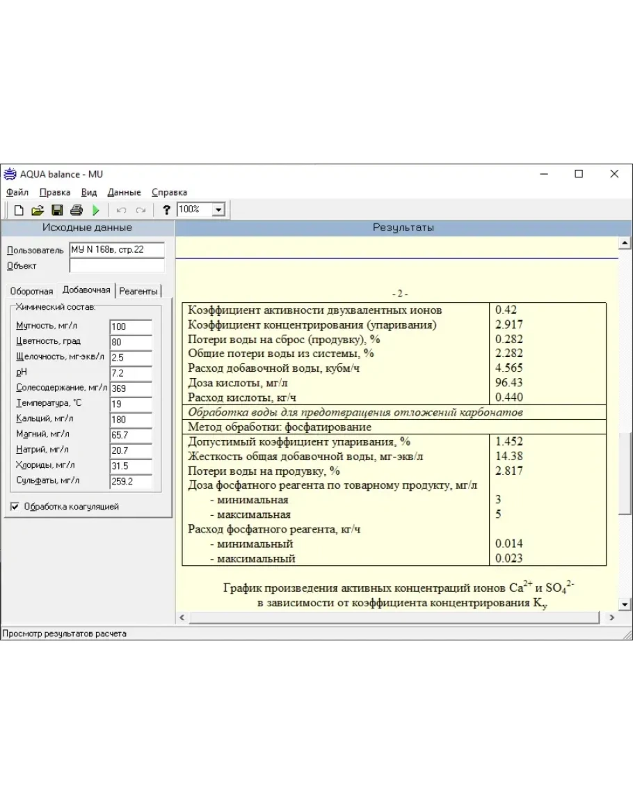 Расчет режимов обработки охлаждающей воды