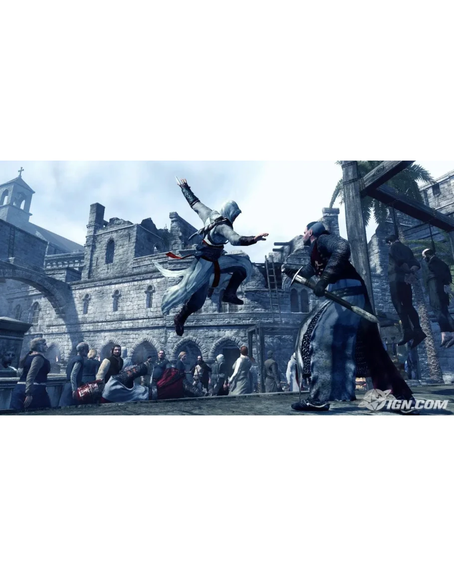 Сюжет игры происходит в 1191 году во времена Третьего Крестового Похода. Из благословенной борьбы за освобождение Гроба Господня Поход превратился в личное противостояние предводителей христианского и мусульманского миров. Ричард Львиное Сердце после завоевания портового города Акра собирается нанести поражение Саладину в Иерусалиме. В это время Святую Землю разоряют наместники, почувствовавшие свою власть без административного контроля. Дабы вернуть мир, нужно устранить всех, кому выгодна война. За эту работу берется Альтаир, один из секты ассасинов, которым вам и придется управлять. Кроме самоотверженности, главный герой владеет разными видами холодного оружия для победы, собственным телом для скрытности в городском ландшафте, владеет интуицией для выбора подходящего момента, чтобы расправится с жертвой.