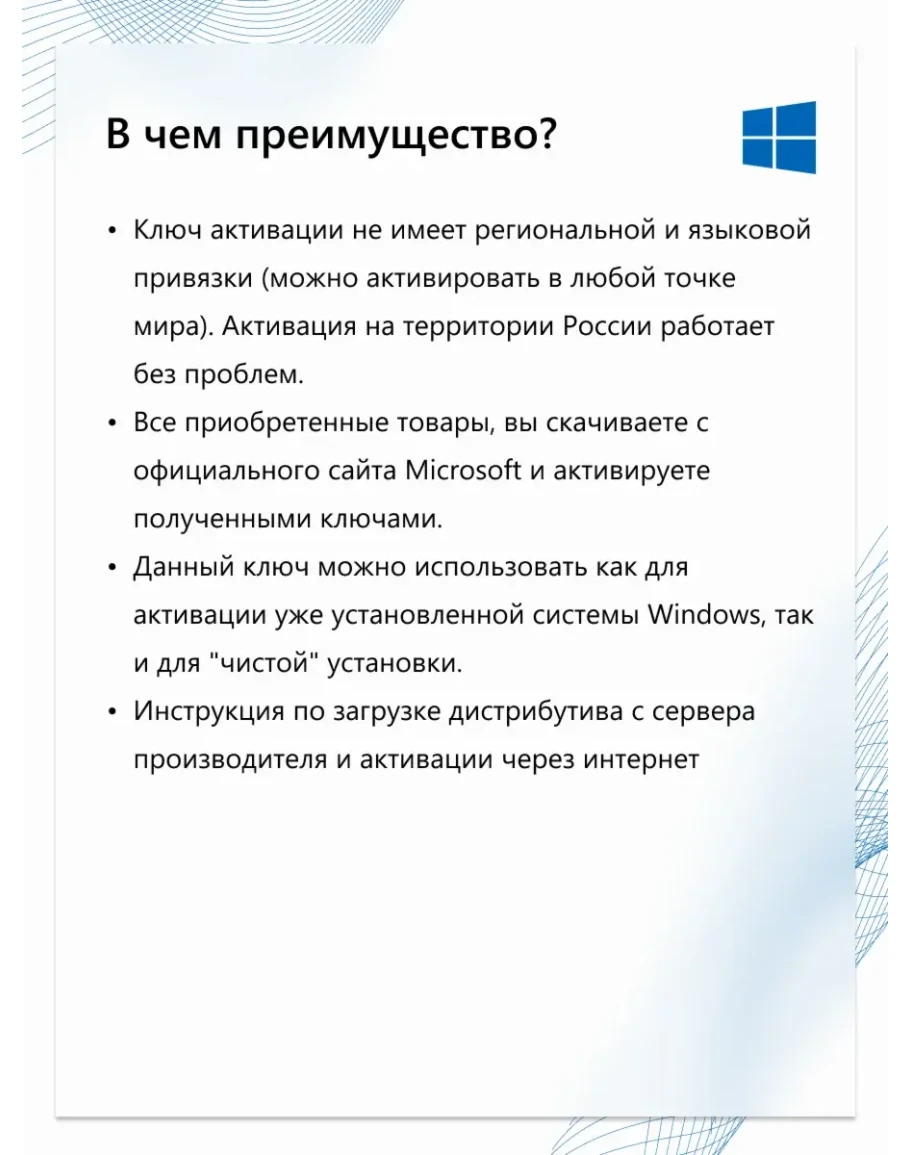 • Региональная привязка - нет, ключ может использоваться в любой точке мира.