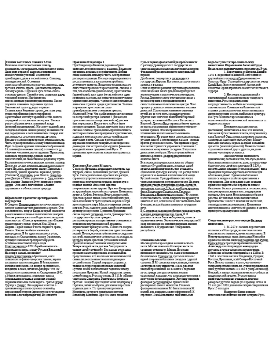 Шпаргалка по истории. 59 тем. Темы разбиты по столбцам, подобран оптимальный размер шрифта.
