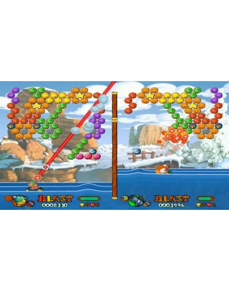 ★ Берегите голову. Если вы попадете блоком одного цвета по таким же блокам, то они упадут в воду… и не только на вашего противника! Некоторые блоки уничтожить не так просто: потребуется несколько выстрелов или специальное снаряжение.