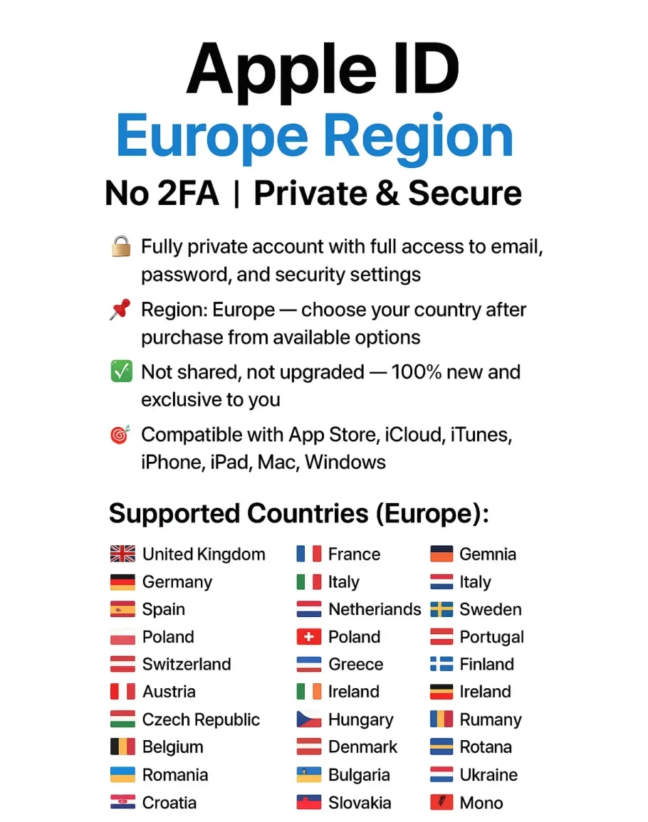 - 🌍 Регион: Европа — выбор после покупки