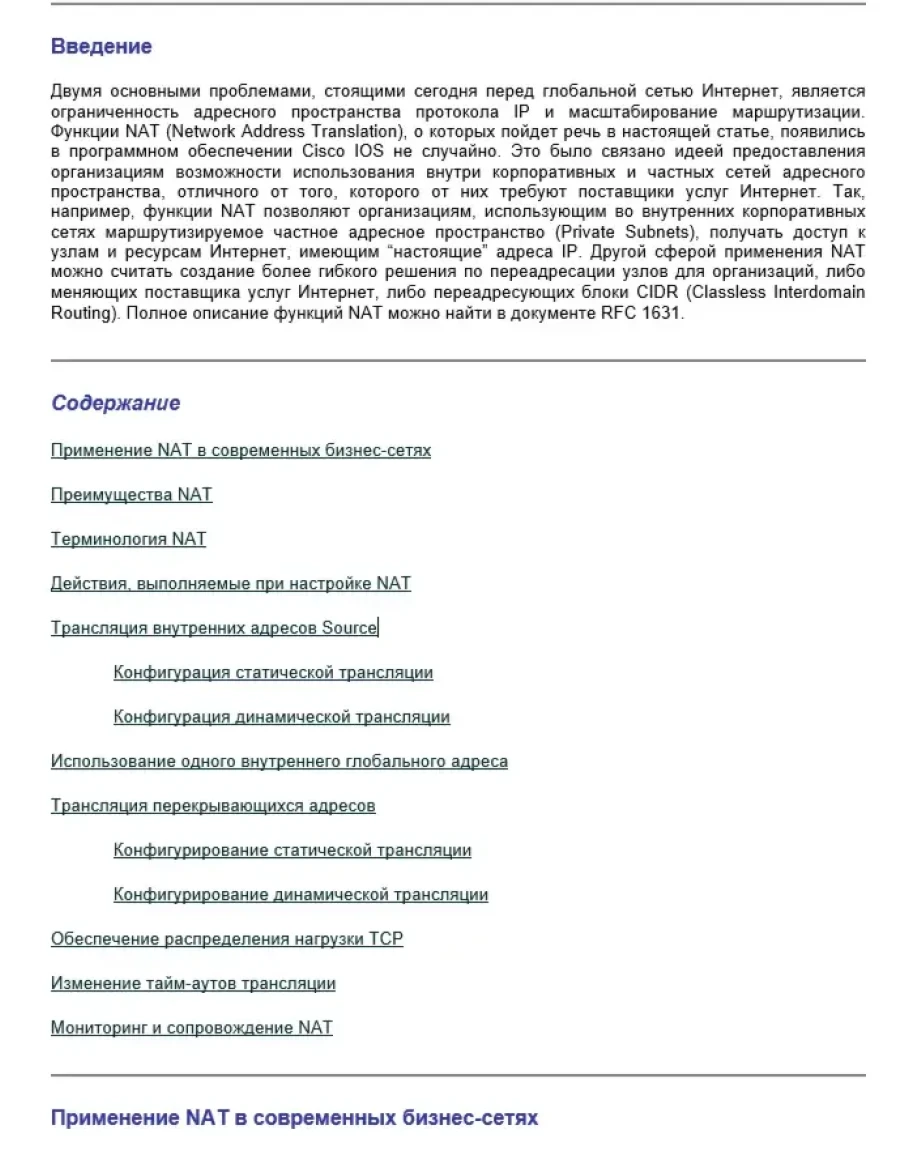 Cisco IOS (NAT) Документация