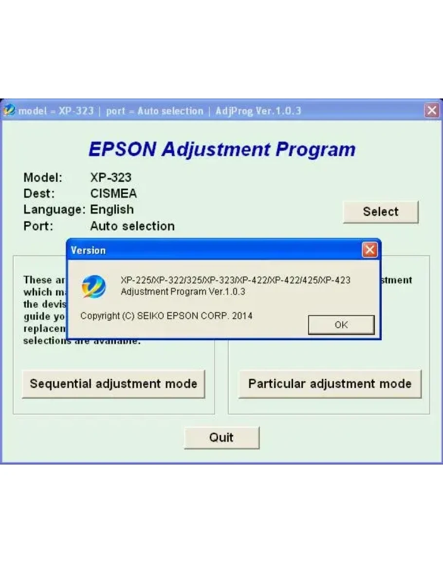 Epson XP225, XP322, XP323, XP325, XP422, XP423, XP425 Adjustment Program