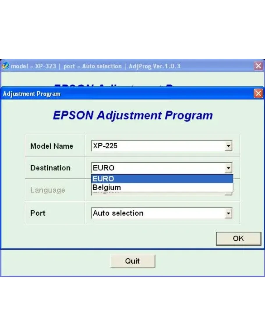 Epson XP225, XP322, XP323, XP325, XP422, XP423, XP425 (EURO, Belgium, CISMEA) Ver.1.0.3 Service Program