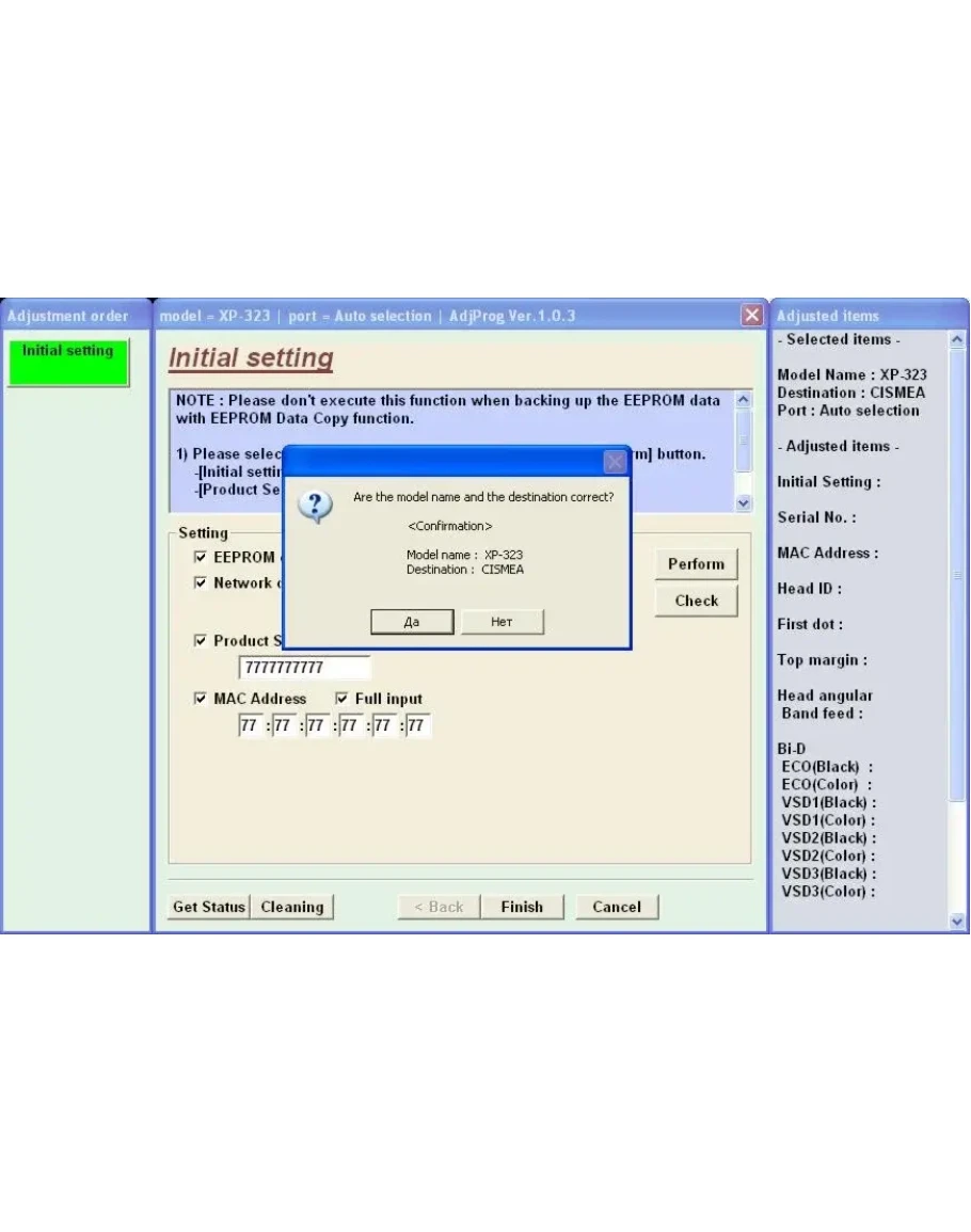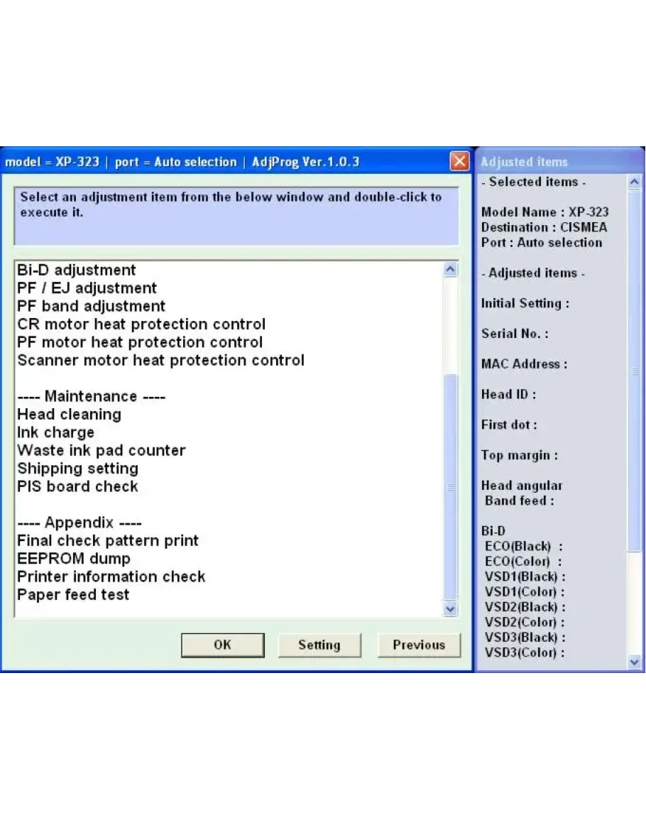 XP225, XP322, XP323, XP422, XP423 Adjustment Program