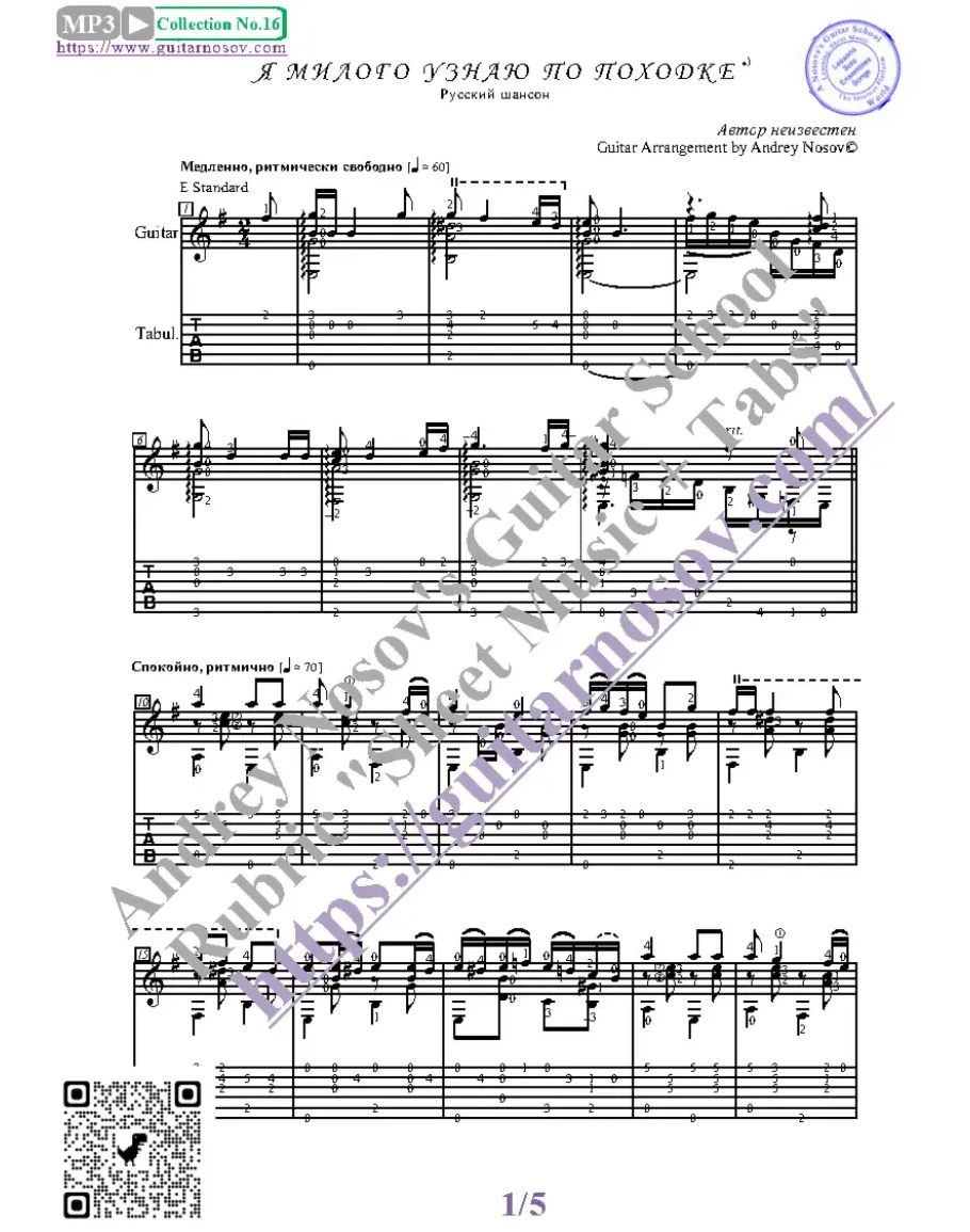 Товар состоит из двух частей (pdf / png*): 1 – Ноты с табулатурой; 2 – Ноты без табулатуры. Прилагается ссылка на скачивание mp3.