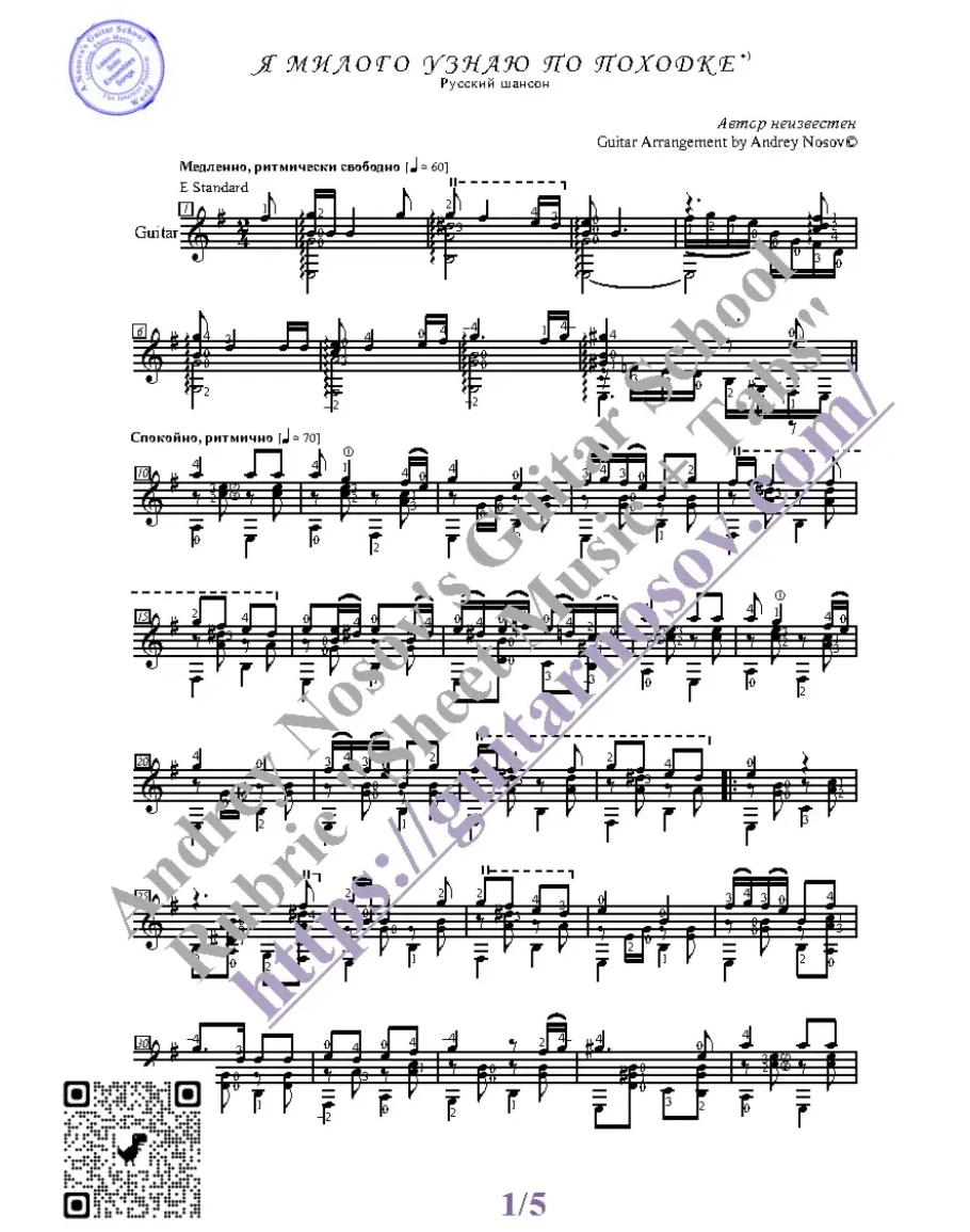 Кликните "Подробнее" для получения дополнительной информацииВашему вниманию предлагается композиция "Я милого узнаю по походке (Русский шансон)", предназначенная для исполнения на 6-ти струнной гитаре СОЛО. Запись выполнена нотами, сопровождена подробнейшей аппликатурой и продублирована табулатурой.