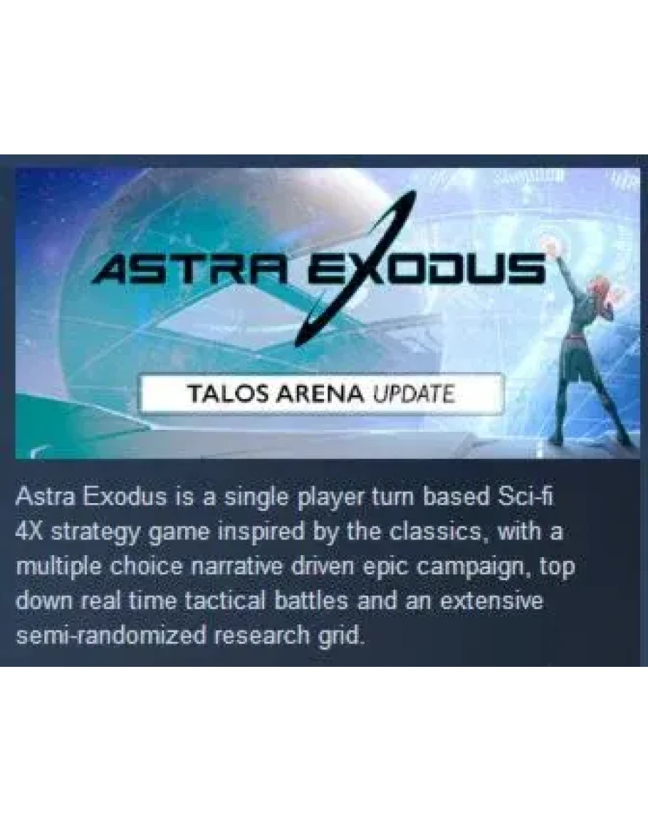Astra Exodus is a single player turn based Sci-fi 4X strategy game inspired by the classics, with a multiple choice narrative driven epic campaign, top down real time tactical battles and an extensive semi-randomized research grid.