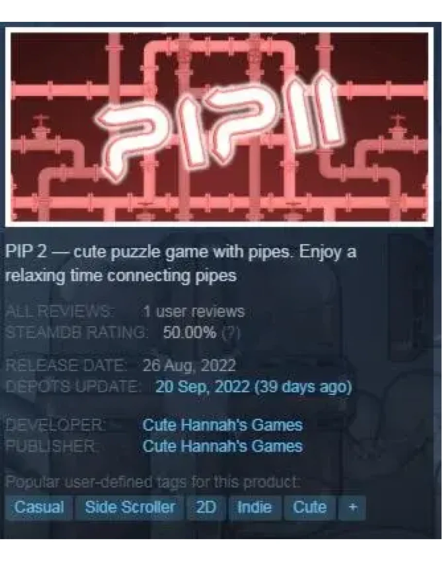 PIP 2 — cute puzzle game with pipes. Your goal is to connect the pipes together to pass the level.