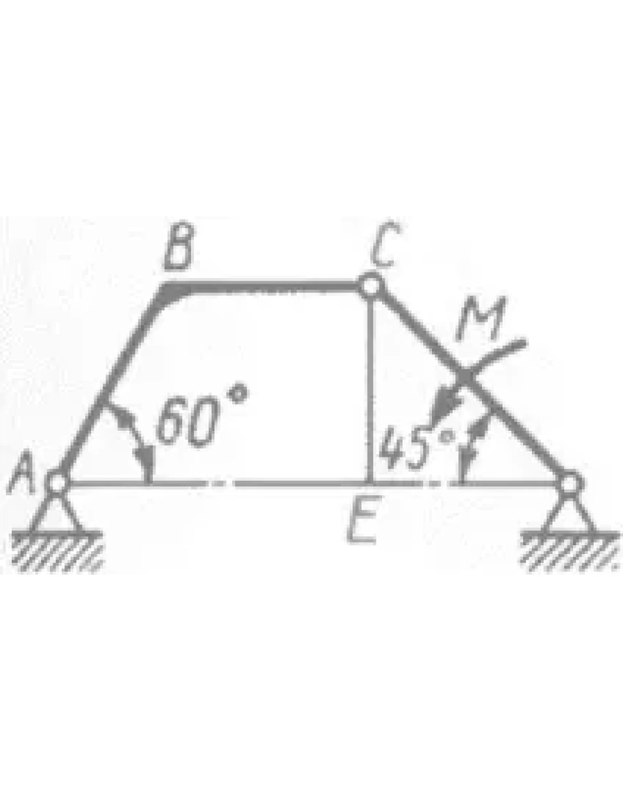 Определить в кН*м момент М пары сил, при котором вертикальная составляющая реакции опоры А равна 10 кН, если размеры ВС = СЕ =1 м.