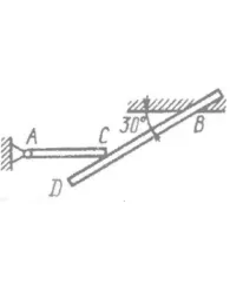 Однородный горизонтальный стержень АС, вес которого равен 180 Н, свободно опирается в точке С на балку ВД. Определить реакцию балки ВД на стержень АС.