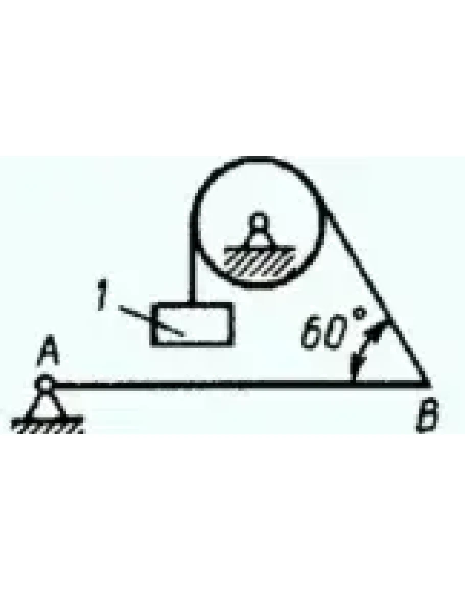 Определить вес груза 1, необходимый для удержания однородной балки АВ в равновесии в горизонтальном положении, если ее вес равен 346 Н.