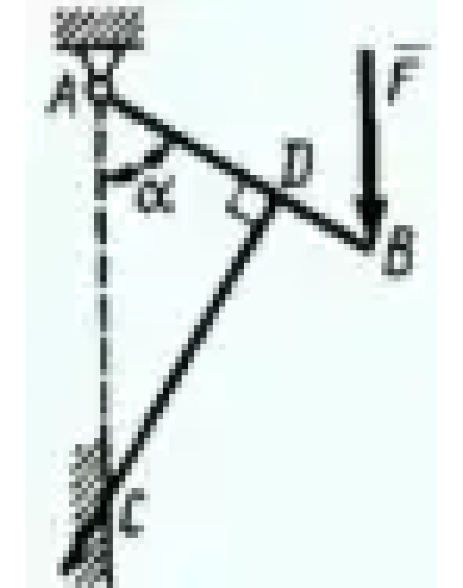 Балка АВ опирается на стержень CD. Определить реакцию стержня CD, если длины АВ = 2 м, ВD = 1/3 АВ, сила F = 4 Н, угол 60°