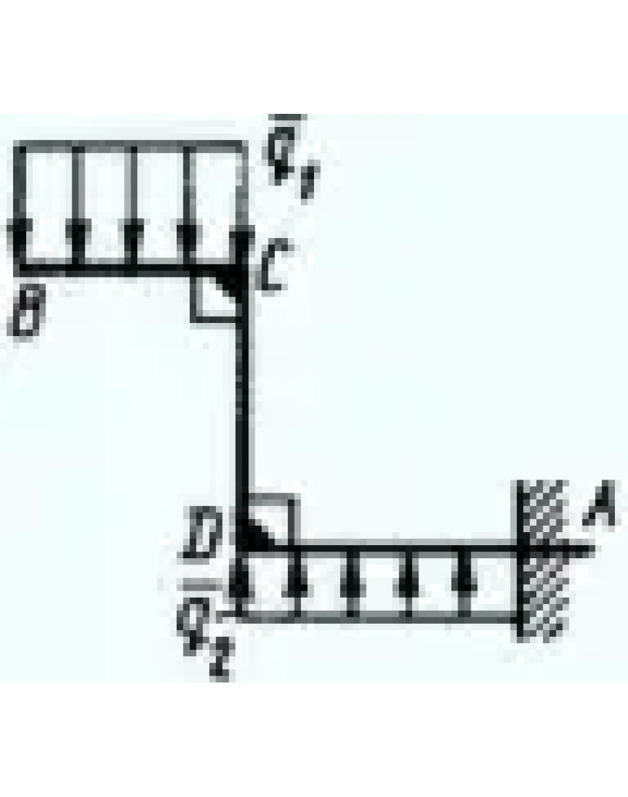 На изогнутую балку АВ, заделанную в стену, действуют распределенные нагрузки интенсивностью q1 = 5 Н/м и q2 = 3 Н/м. Определить момент заделки, если длины ВС = 3 м, AD = 5 м.
