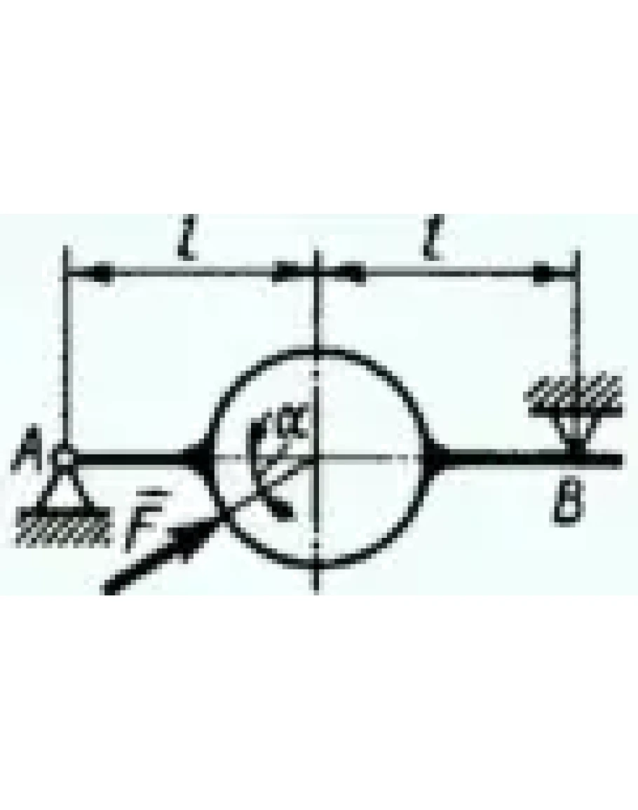 Стержень АВ жестко связан с диском. Определить в кН реакцию опоры В, если сила F = 24 кН, угол а = 30°.