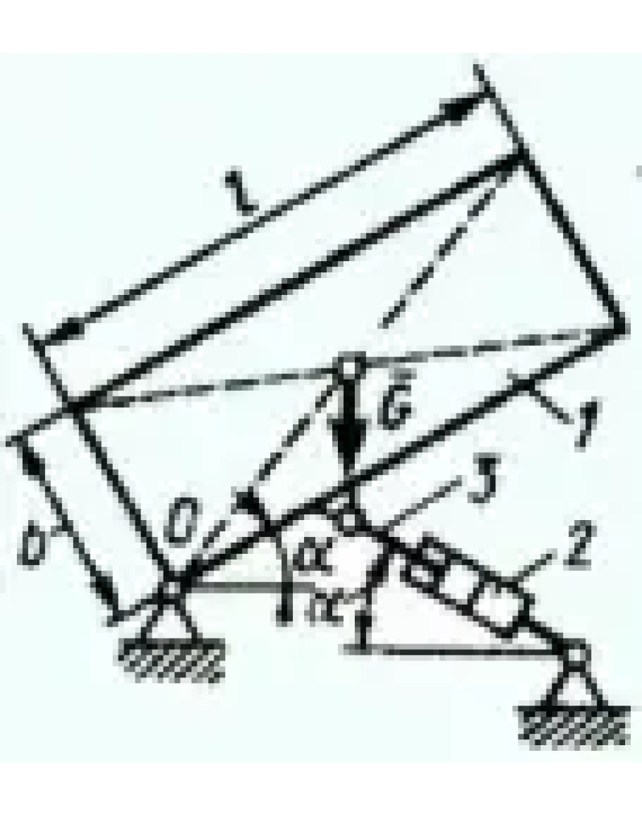 Кузов 1 весом G = 10 кН удерживается в равновесии силовым гидроцилиндром 2. Определить в кН силу, действующую на шток 3 гидроцилиндра, если расстояния l = 3 м, b = 1,2 м, АО = 1 м и угол а = 30°.