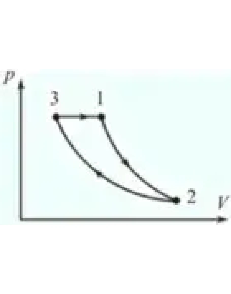 Циклический процесс, представленный на рисунке, состоит из адиабаты, изотермы и изобары. Рабочее тело – идеальный газ. КПД цикла равен 20%. В изотермическом процессе над газом совершается работа A2-3 = 600 Дж. Определите работу газа за цикл.
