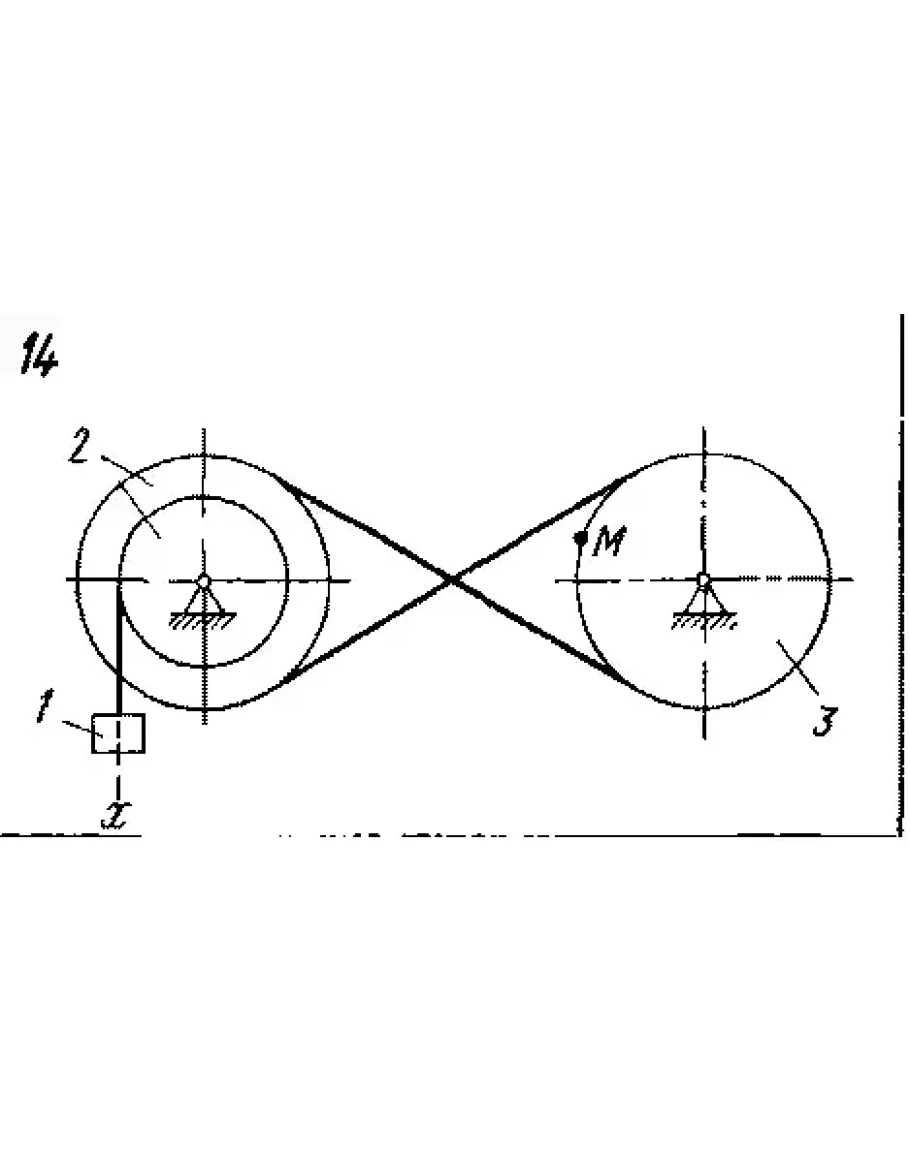 Решение задачи К3 Вариант 14 из решебника по теоретической механике Яблонский А.А. 1978 г., на тему: К3 Определение скоростей и ускорении точек твердого тела при поступательном и вращательном движениях (стр. 88).