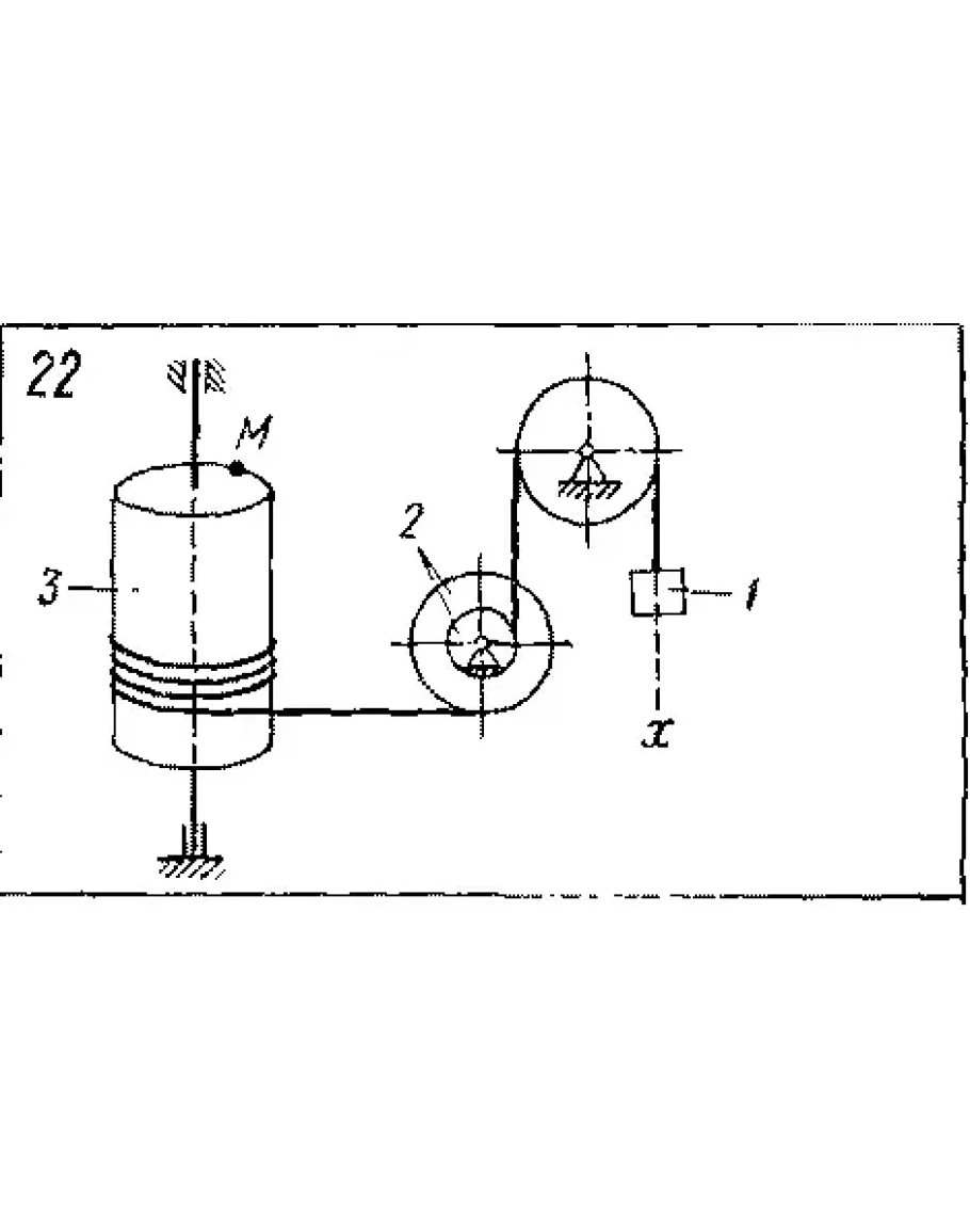Решение задачи К3 Вариант 22 из решебника по теоретической механике Яблонский А.А. 1978 г., на тему: К3 Определение скоростей и ускорении точек твердого тела при поступательном и вращательном движениях (стр. 88).