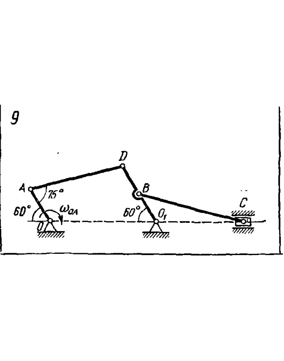 Решение задачи К4 Вариант 9 из решебника по теоретической механике Яблонский А.А. 1978 г., на тему: К4 Определение скоростей точек твердого чела при плоском движении (стр. 93).