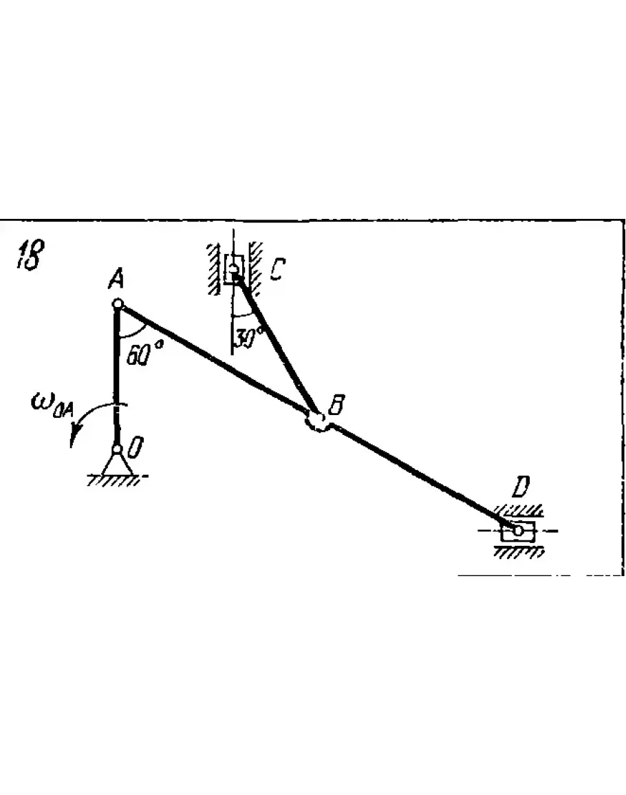 Решение задачи К4 Вариант 18 из решебника по теоретической механике Яблонский А.А. 1978 г., на тему: К4 Определение скоростей точек твердого чела при плоском движении (стр. 93).