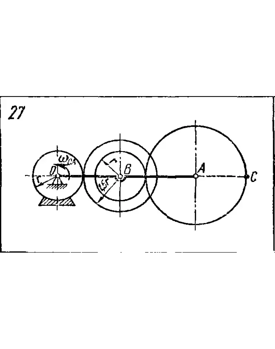 Решение задачи К4 Вариант 27 из решебника по теоретической механике Яблонский А.А. 1978 г., на тему: К4 Определение скоростей точек твердого чела при плоском движении (стр. 93).