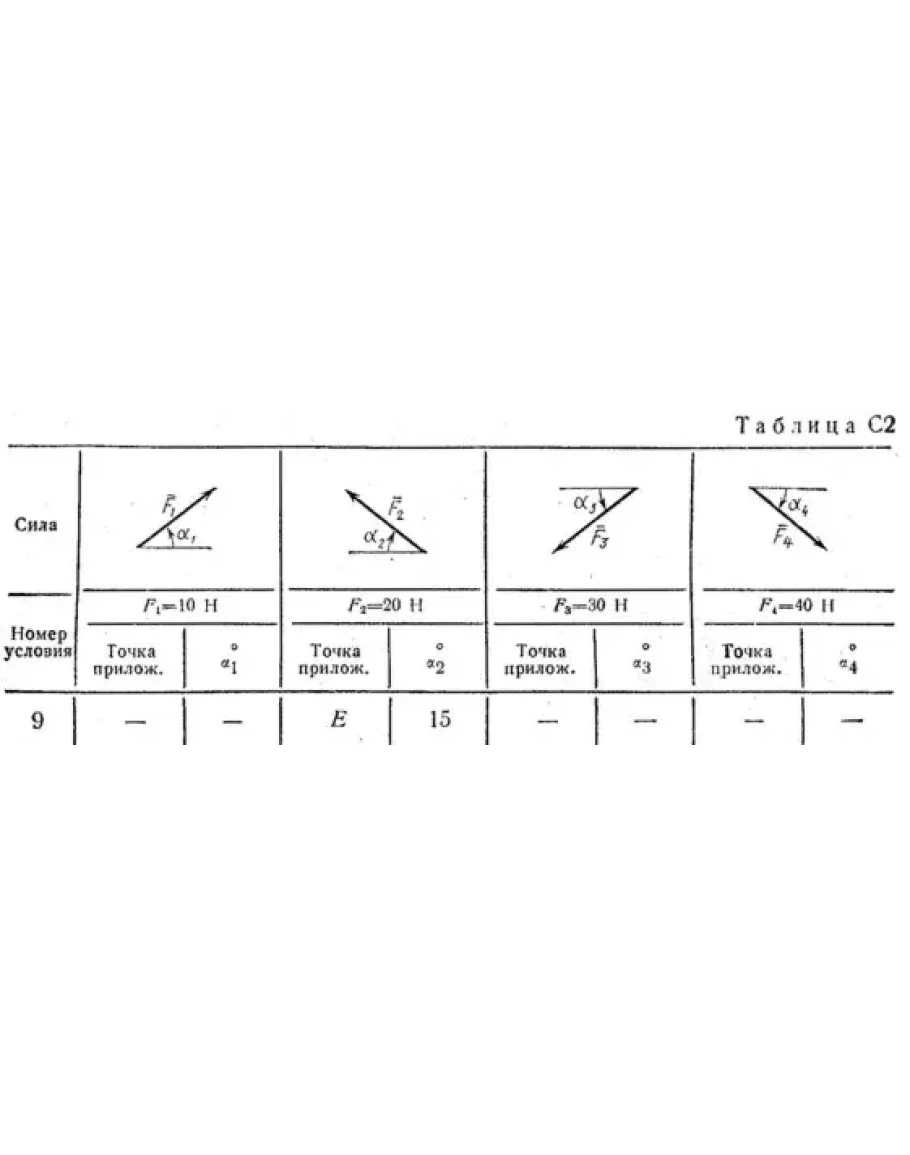 На брусья кроме сил тяжести действуют пара сил с моментом М = 50 Н·м и сила, величина которой, направление и точка приложения указаны в табл. С2.