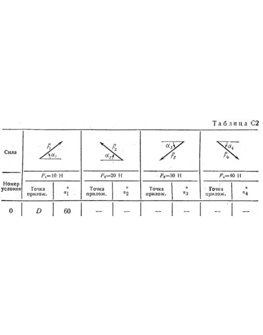 На брусья кроме сил тяжести действуют пара сил с моментом М = 50 Н·м и сила, величина которой, направление и точка приложения указаны в табл. С2.