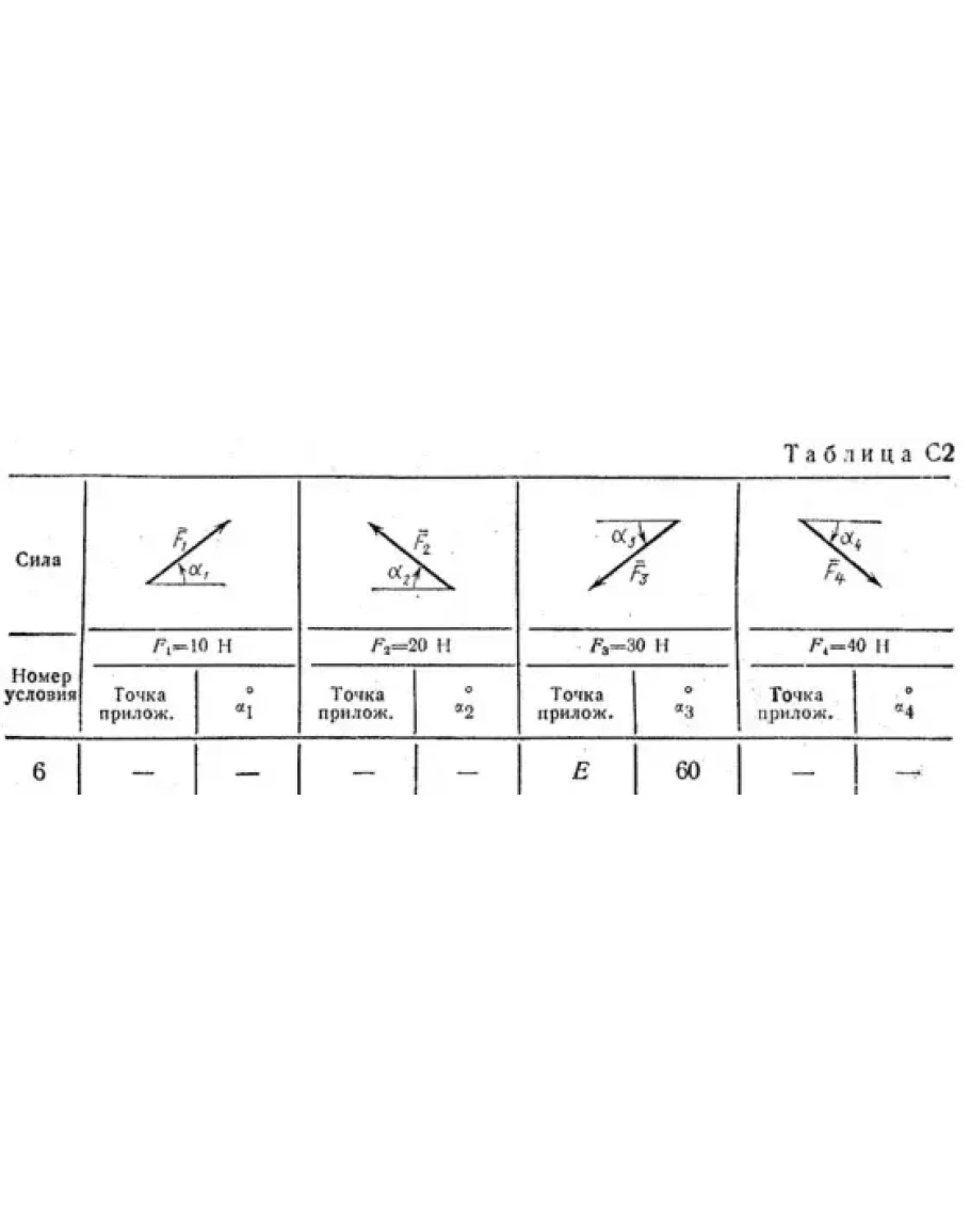 На брусья кроме сил тяжести действуют пара сил с моментом М = 50 Н·м и сила, величина которой, направление и точка приложения указаны в табл. С2.