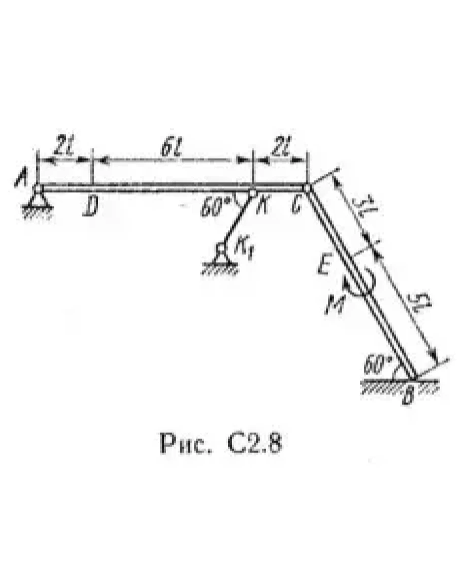 Определить реакции связей в точках А, В, С и К (на рис. 6 в точках А, С, К и Н). При окончательных расчетах принять l = 0,2 м.