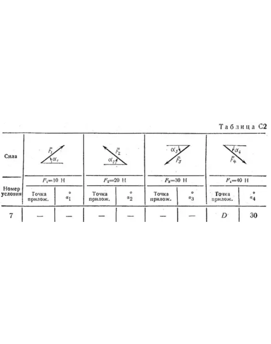 На брусья кроме сил тяжести действуют пара сил с моментом М = 50 Н·м и сила, величина которой, направление и точка приложения указаны в табл. С2.