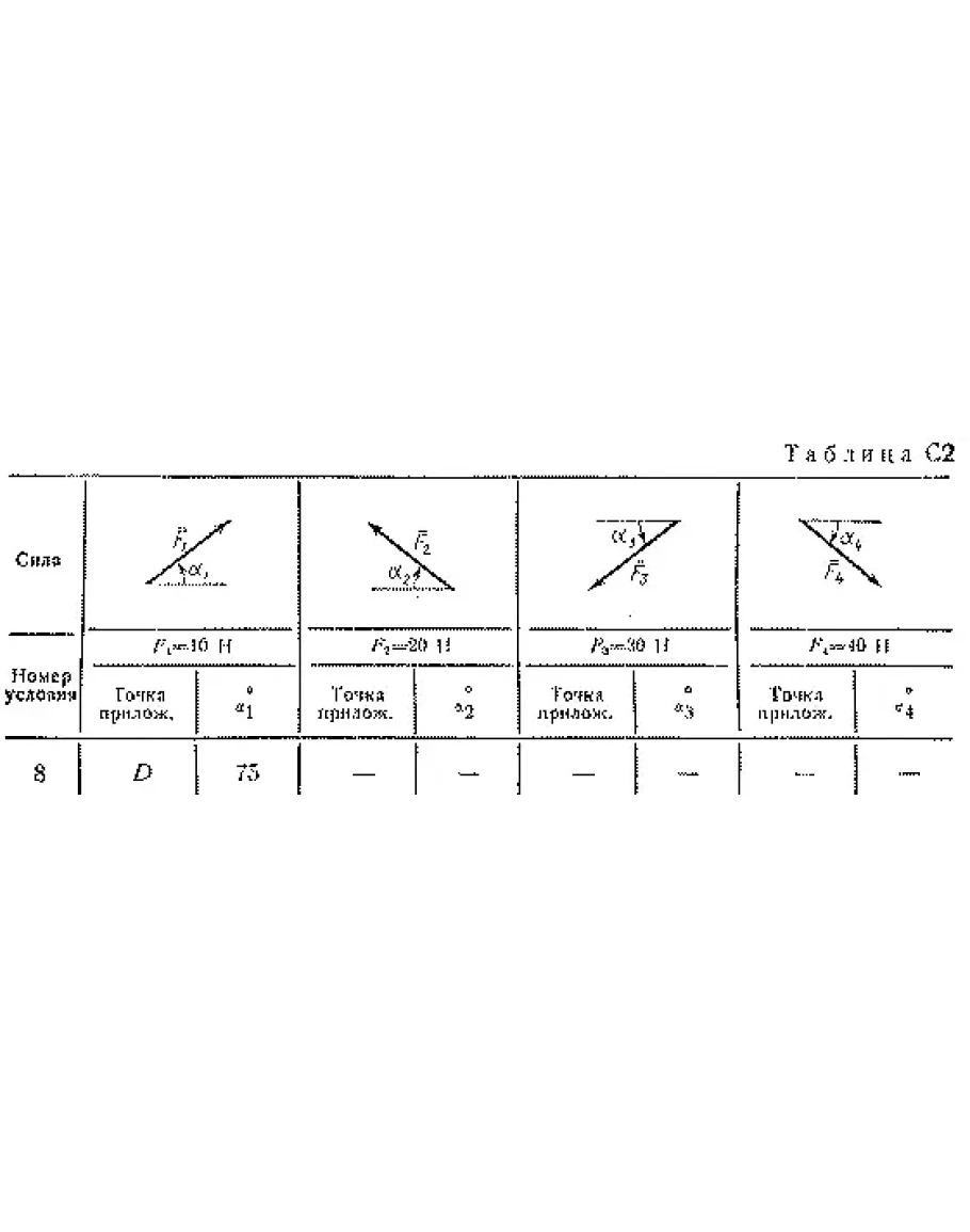 На брусья кроме сил тяжести действуют пара сил с моментом М = 50 Н·м и сила, величина которой, направление и точка приложения указаны в табл. С2.