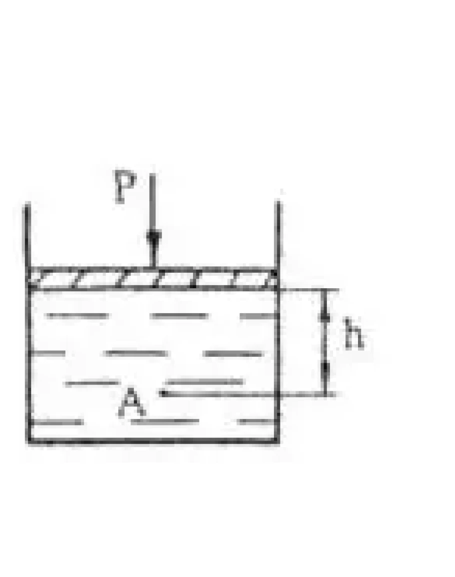 Определить избыточное давление в точке А на глубине h = 2 м от поршня диаметром d=0,2 м, если на него действует сила Р = 3140 Н (р=1000кг/м3)