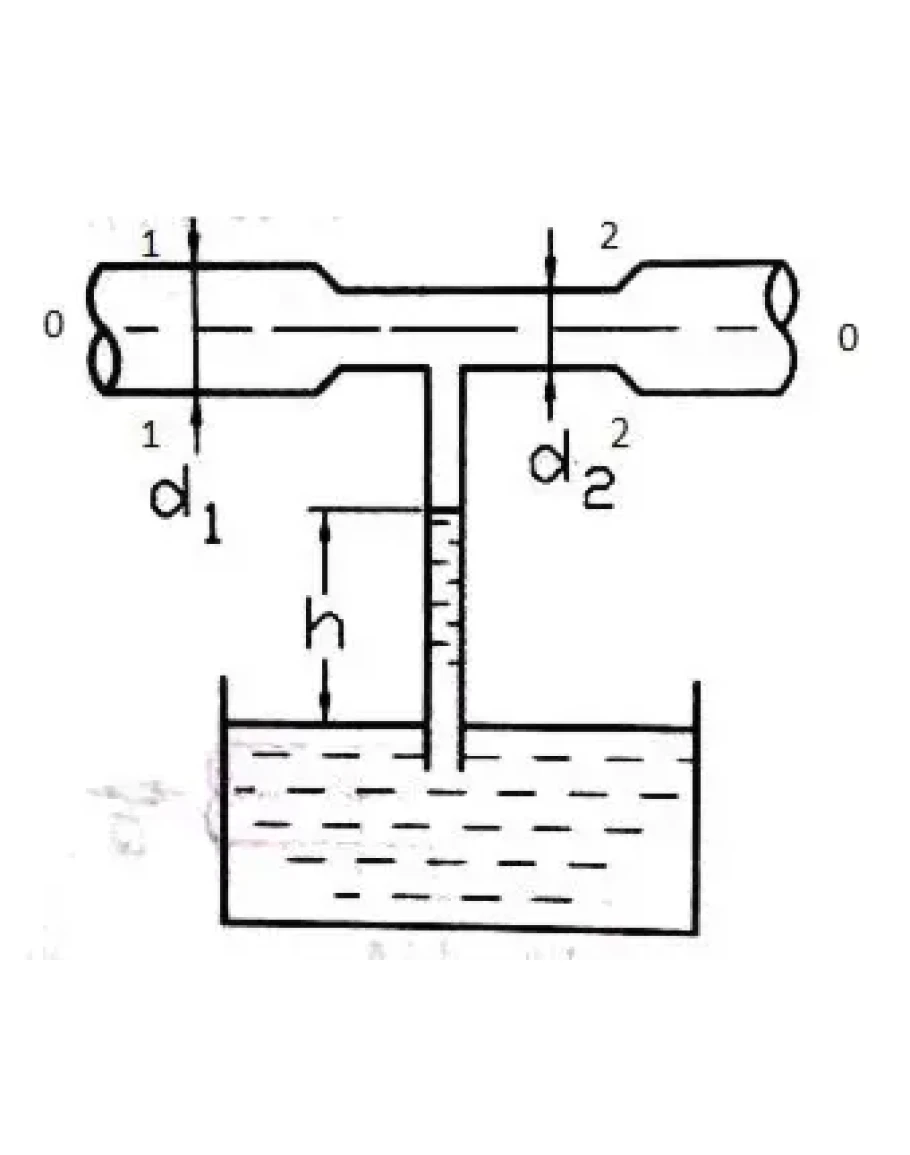 По трубопроводу, имеющему сужение, протекает вода расходом Q (рис. 3.16). Определить, какой диаметр d2 должна иметь узкая часть трубопровода, чтобы обеспечить засасывание воды из резервуара на высоту h, если известны d1 и р1.