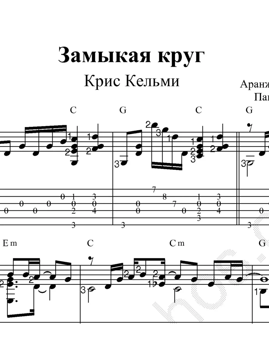 Замыкая круг (Крис Кельми). Ноты для гитары и табы