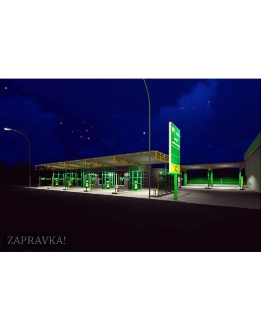 Модель 3D автомобильной заправочной станции с реалистичностью к настоящим условиям.