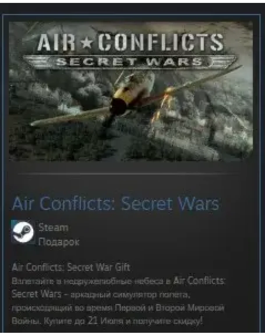 Взлетайте в недружелюбные небеса в Air Conflicts: Secret Wars - аркадный симулятор полета, происходящий во время Первой и Второй Мировой Войны. Купите до 21 Июля и получите скидку!