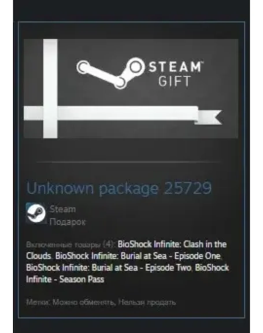 Включенные товары (4): BioShock Infinite: Clash in the Clouds, BioShock Infinite: Burial at Sea - Episode One, BioShock Infinite: Burial at Sea - Episode Two, BioShock Infinite - Season Pass