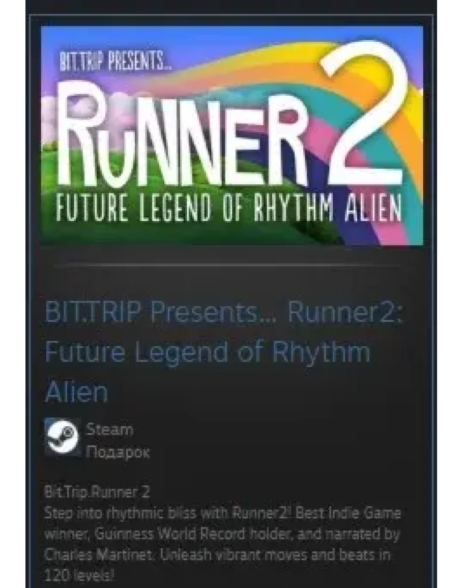 Погрузитесь в ритмичное блаженство с Runner2! Победитель в номинации "Лучшая независимая игра", обладатель книги рекордов Гиннесса, автор сценария Чарльз Мартине. Дайте волю ярким движениям и ритмам на 120 уровнях!