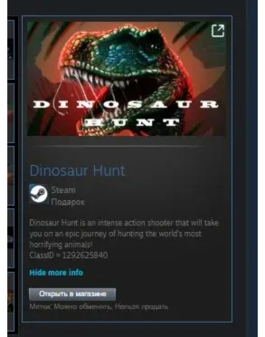 Dinosaur Hunt — захватывающий экшен-шутер, который отправит вас в эпическое путешествие по охоте на самых ужасающих животных в мире!