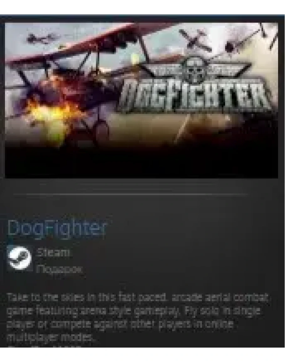 DogFighter — это динамичная аркадная игра с воздушными боями и геймплеем в стиле арены. Игроки могут соревноваться с 15 противниками в 4 многопользовательских режимах или действовать в одиночку в 7 режимах одиночной игры, используя усиленные бипланы, оснащенные более чем 20 различными видами наступательного и защитного оружия...