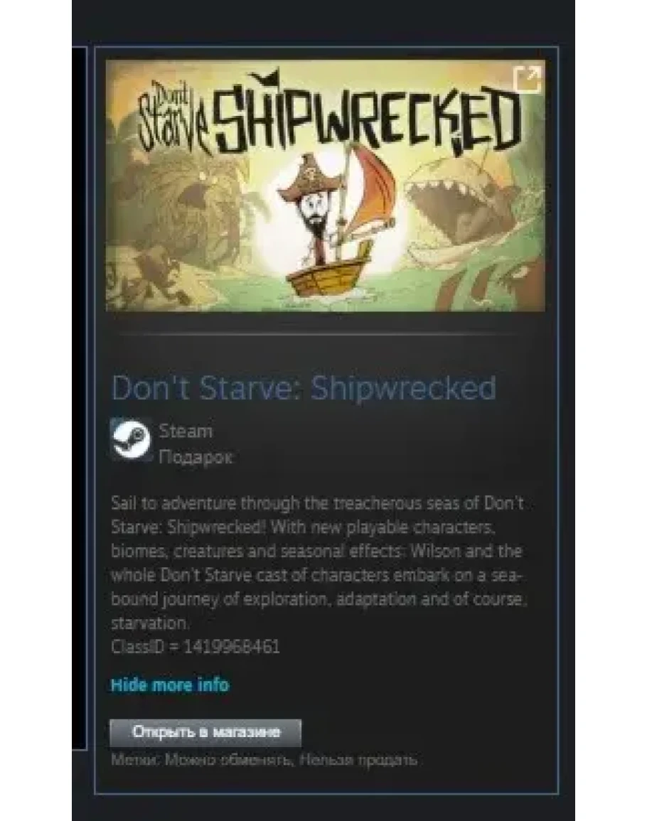 Отправляйтесь на поиски приключений по коварным морям Don't Starve: Shipwrecked! С новыми игровыми персонажами, биомами, существами и сезонными эффектами Уилсон и весь состав персонажей Don't Starve отправляются в морское путешествие, полное исследований, адаптации и, конечно же, голода.
