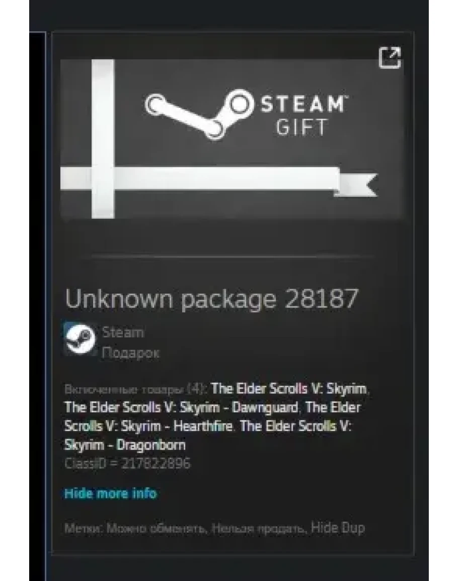 Включенные товары (4): The Elder Scrolls V: Skyrim, The Elder Scrolls V: Skyrim - Dawnguard, The Elder Scrolls V: Skyrim - Hearthfire, The Elder Scrolls V: Skyrim - Dragonborn