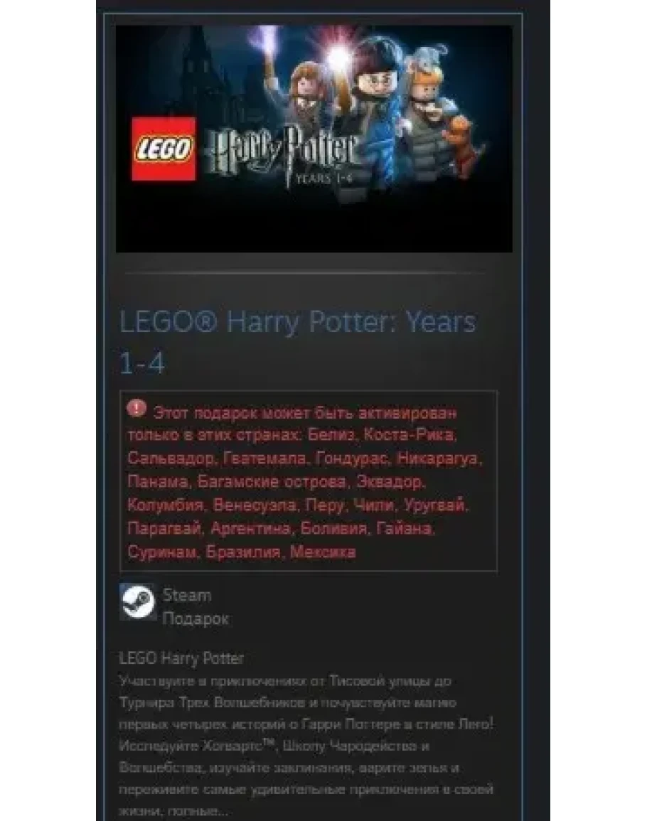 Этот подарок может быть активирован только в этих странах: Белиз, Коста-Рика, Сальвадор, Гватемала, Гондурас, Никарагуа, Панама, Багамские острова, Эквадор, Колумбия, Венесуэла, Перу, Чили, Уругвай, Парагвай, Аргентина, Боливия, Гайана, Суринам, Бразилия, Мексика